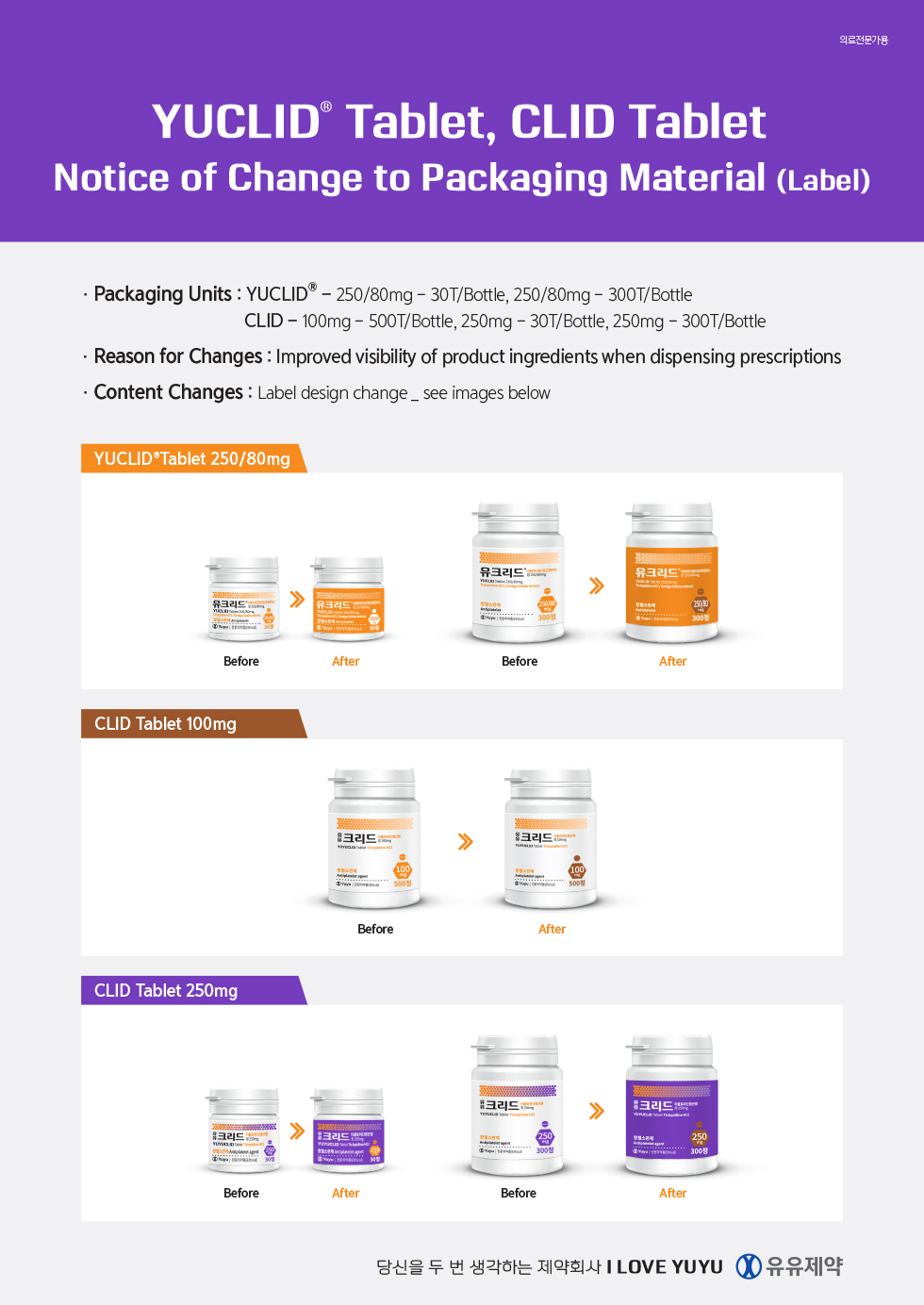 YUCLID® Tablet, CLID Tablet Notice of Change to Packaging Material (Label)