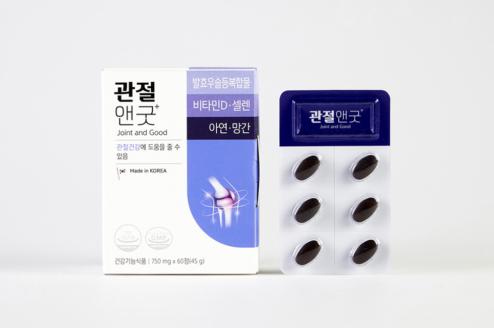 '관절앤굿'의 주성분인 발효우슬등복합물은 동의보감, 본초정화 등 고서에 관절 질환을 치료할 때 쓰인다고 기록된 우슬(牛膝)과 당귀, 두충 등 100% 국내산 원료를 배합해 농축했으며 식품의약품안전처에서 관절건강 개선 기능성으로 개별인정을 획득했다.
