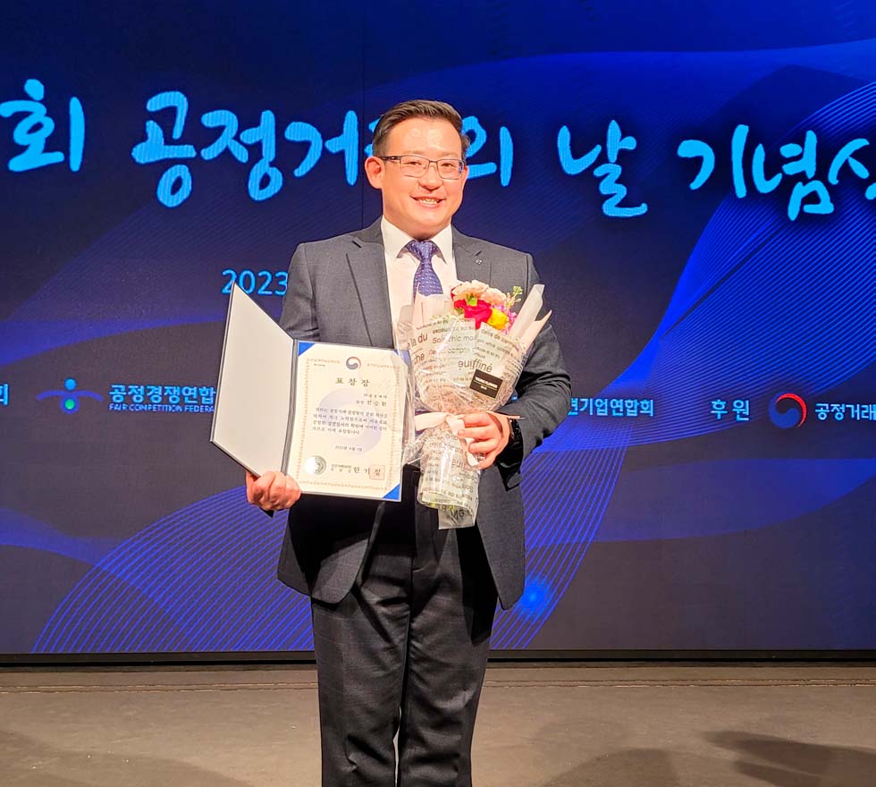 유유제약 윤리경영팀 전승환 팀장이 제22회 공정거래의 날 기념식에서 공정거래 위원장 표창을 받았다.