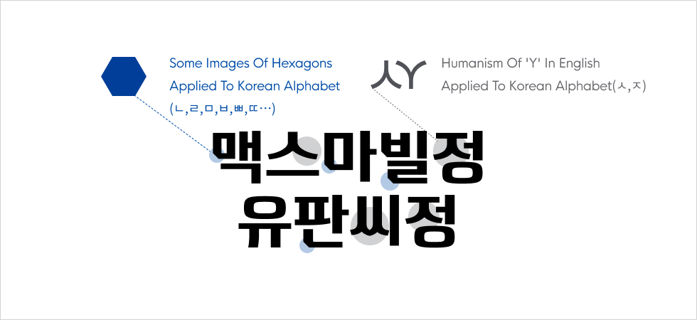 The basic concept of "Yuyu Typeface" contains its basic characteristics, the hexagonal structure of the benzene nucleus that expresses the chemical formula, which is the basic foundation of new pharmaceutical drug research, the core competency of a pharma company, and the first letter of the company's name, "y" as an indicator of a sense of humanity. The square shape was applied to the bent part of the Korean consonant letters (ㄴ,ㄹ,ㅁ,ㅂ,ㅃ,ㅌ, etc.), and the English letter ‘y’, as a e humanistic form, was applied to the consonant letters "ㅆ and ㅉ".