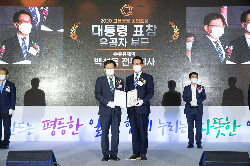 SEOUL, South Korea, Sept. 4, 2020 /PRNewswire/ -- Eugene Baik, Head of Production at Yuyu Pharma (CEO Robert Wonsang Yu, KRX 000220), received the Presidential Commendation for contributions in leading the realization of gender equality employment. The award was given at the 2020 Gender Equality Award Ceremony held on the 31st at the Government's Seong Convention Center.