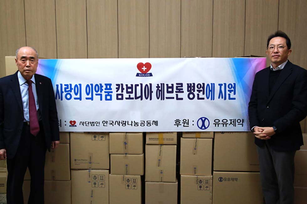 유유제약은 (사)한국사랑나눔공동체를 통해 캄보디아 헤브론병원에 항결핵제, 골다공증 치료제, 비타민 등 각종 의약품을 기부해 ESG경영을 실천했다.
