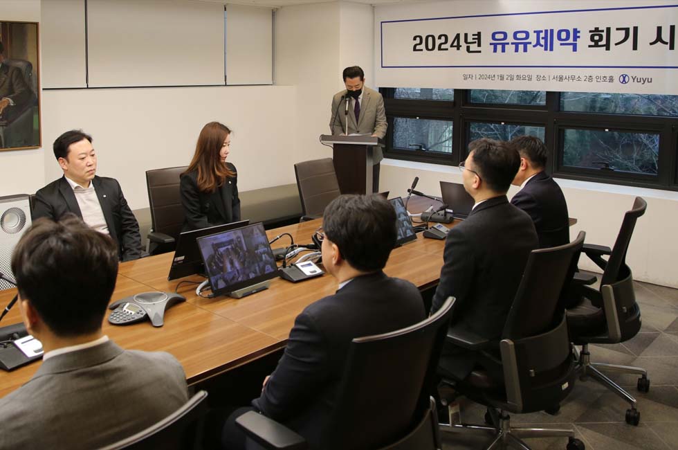유유제약이 2024년 시무식을 개최하고 전 임직원이 함께 올해 경영목표를 공유하는 시간을 가졌다.