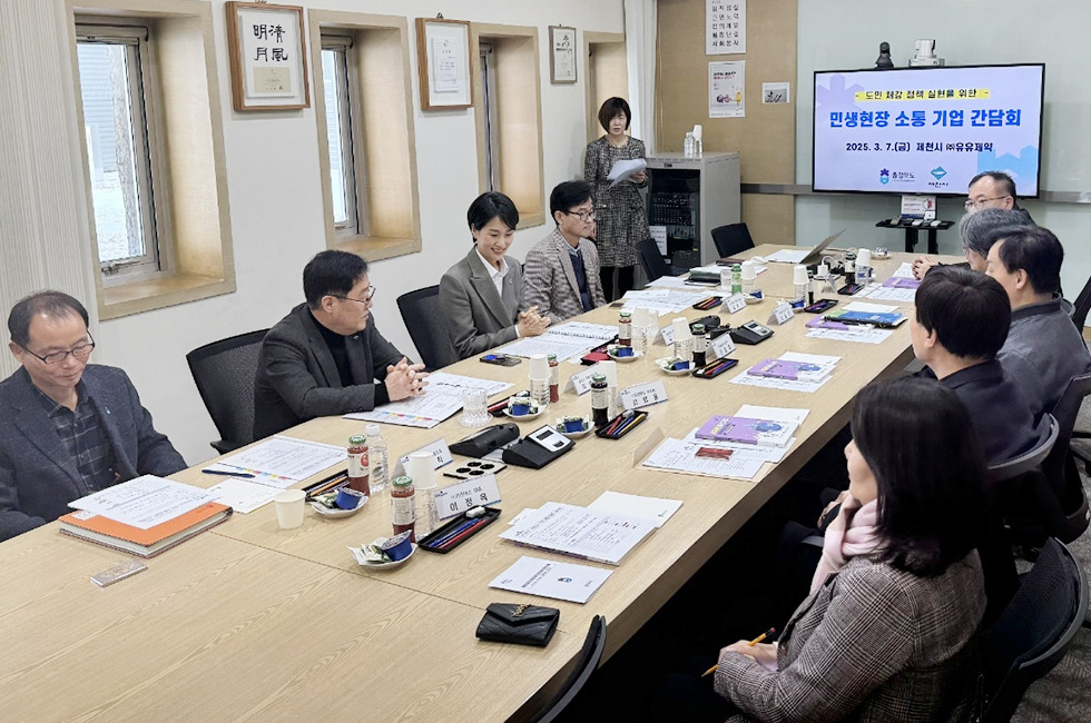 이번 간담회는 대내외 경제 불확실성이 심화되면서 어려움을 겪고 있는 충북 소재 기업들의 목소리를 듣고자 개최됐으며, 김수민 충북도 정무부지사, 최승환 제천시 부시장을 비롯해 유유제약 천준희 공장장, 한정철 제천・단양 상공회의소 회장 등 제천을 대표하는 기업인이 참석했다.
