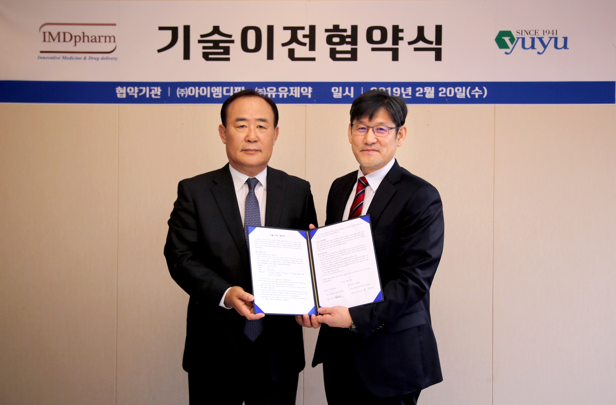 유유제약(대표이사 최인석)은 신약개발 라인업 다변화를 위해 바이오 벤처기업 ㈜아이엠디팜(대표이사 박영준)과 기술 도입 계약을 체결했다.