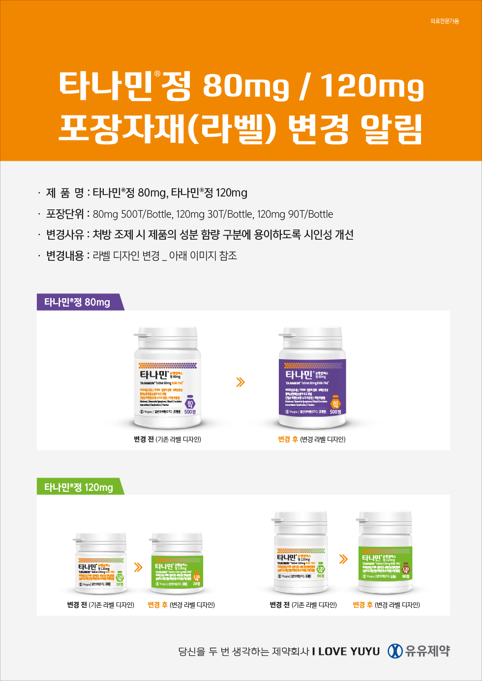 타나민정 80mg / 120mg 포장자제(라벨) 변경 알림