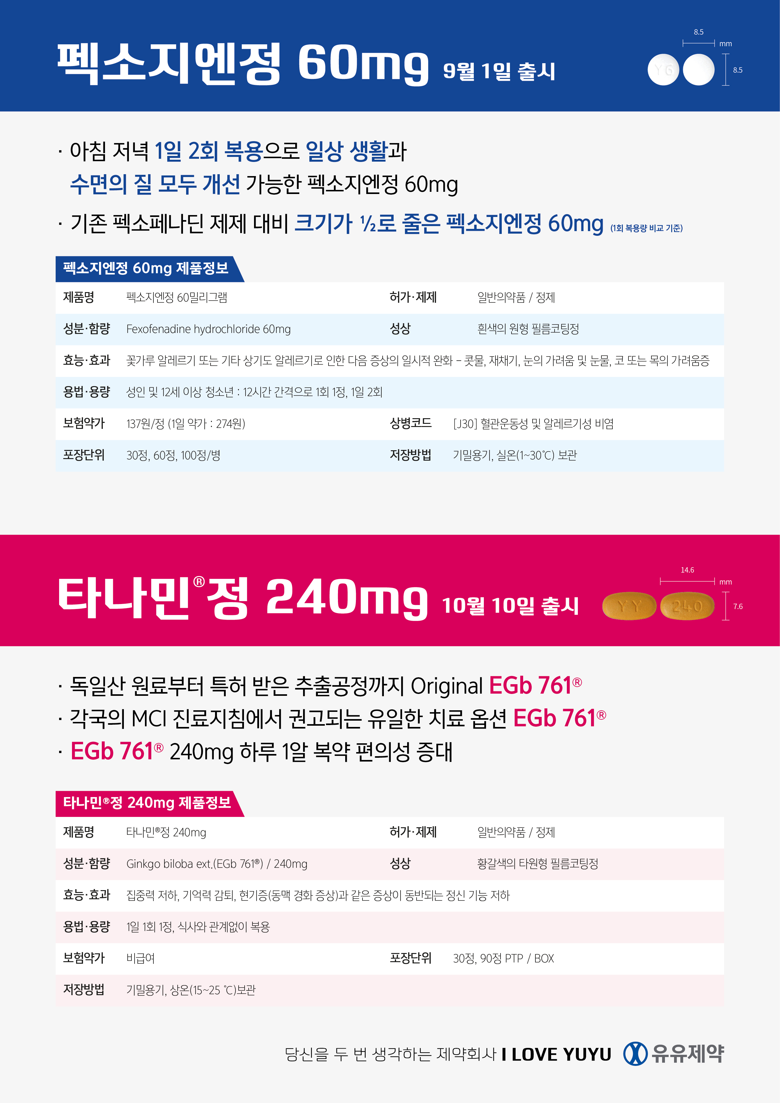펙소지엔정 60mg, 타나민®정 240mg 신제품 알림
